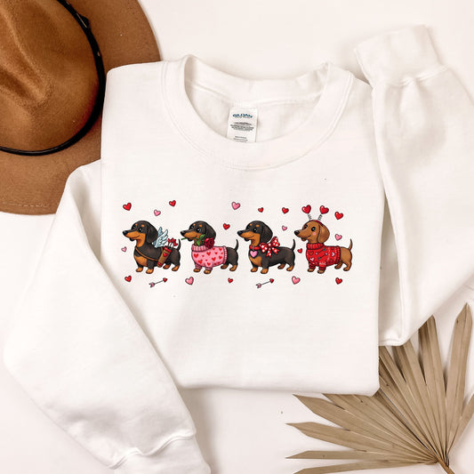 Valentine Dachshund Sweatshirt, Wiener Dog Heart Design, Sausage Dog Valentine Gift for Dog Lovers