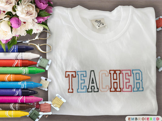 Teacher Embroidered Comfort Colors® T-Shirt, Perfect Gift for Educators, Embroidered Teacher, Gift for Teachers, School Shirt