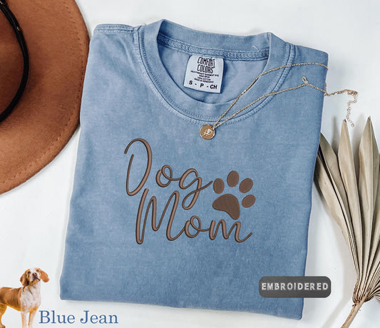 Comfort Colors® Dog Mom Embroidered Shirt, Comfort Colors Pet Lover Tee, Cute Paw T Shirt, Dog Lover Aesthetic Tee, Cozy Gift for Dog Moms