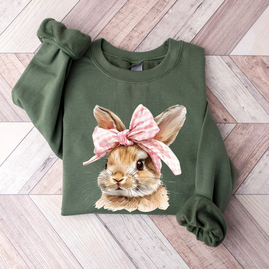 Coquette Easter Bunny Crewneck Sweatshirt | Retro Gingham Bow Bunny Pullover