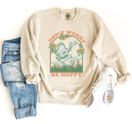 Don't Worry Be Hoppy Sweatshirt, Frog Sweatshirt, Funny Frog Sweater, Cottagecore Clothing, Frog Playing Banjo Hoodie, Nature Lover Hoodie