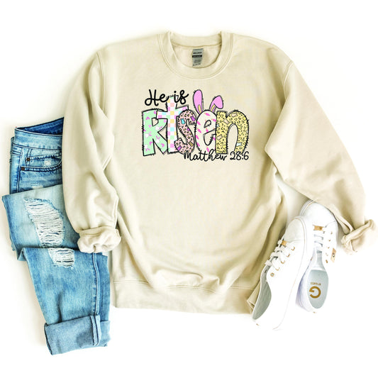 He is Risen Easter Sweatshirt, Matthew 28:6 Bible Verse, Christian Apparel, Cute Easter Bunny Sweatshirt, Religious Spring Hoodie