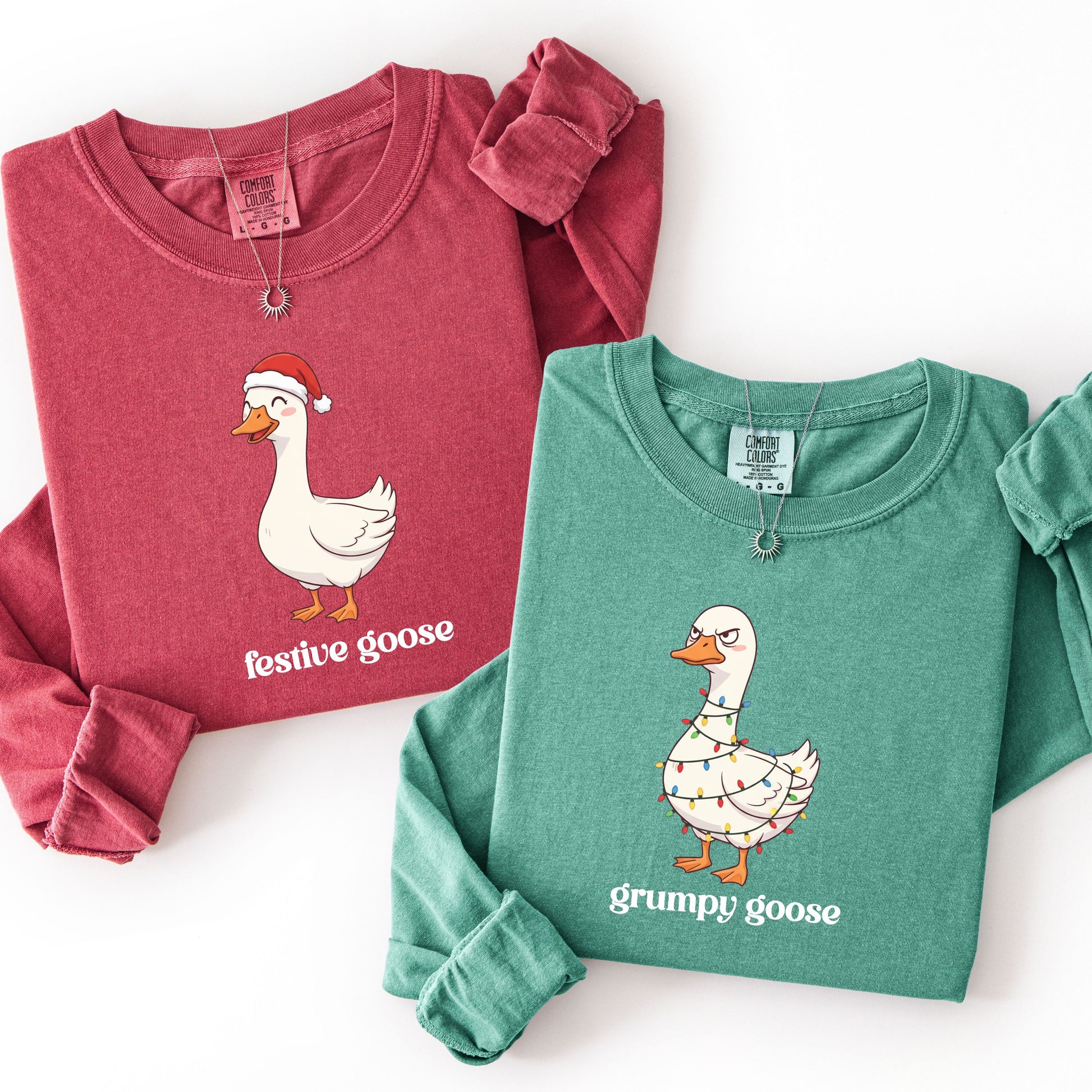 Comfort Colors® Funny Christmas Couple Long Sleeve Shirt, Matching Festive Goose & Grumpy Goose Tee, Holiday Husband Wife Gift, Humor Xmas