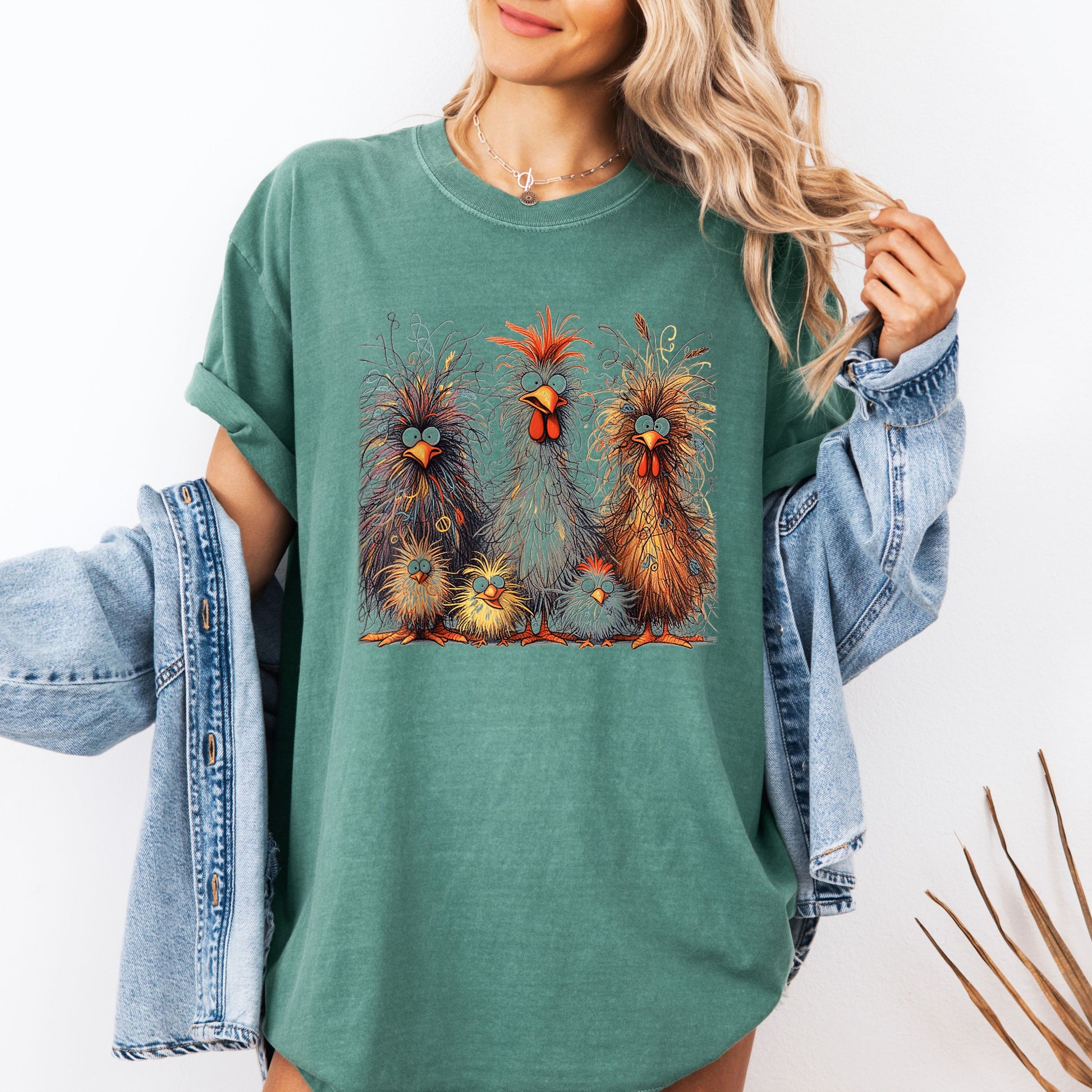 Crazy Chicken Family T-Shirt, Eagerlys Colorful Funny Chicken Art, Farm Life Tee, Gift for Chicken Lover,Messy Hair Don't Care Chicken Shirt