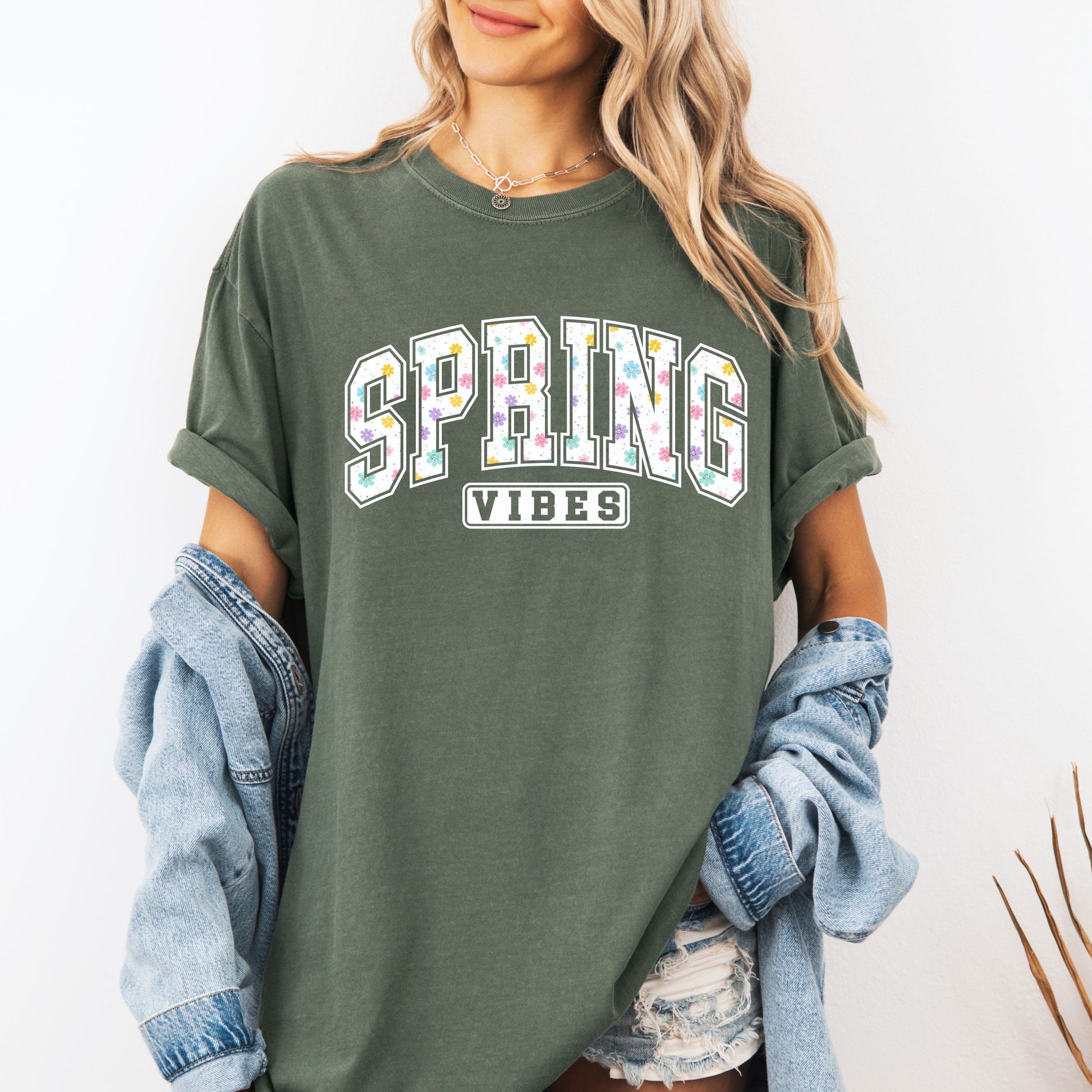 Bring sunshine to the classroom and beyond with our "Spring Vibes" Floral Varsity Tee!